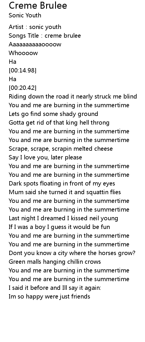 Sonic Youth Creme Brulee Lyrics Lyrics Com